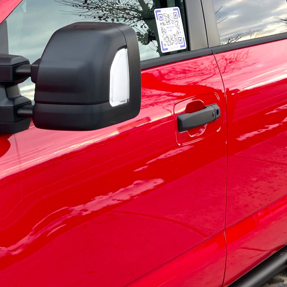 Simply peel and apply to vehicle. Scan and tap to program with URL or integrate using VIN numbers from your website.